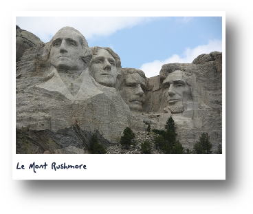 Le Mont Rushmore est une sculpture gravée dans une montagne de granit représentant les quatre pères fondateurs des Etats-Unis. Le premier est Georges Washington, suivi de Jefferson, Lincoln, et enfin Théodore Roosevelt. Chacun ayant accompli des exploits extraordinaires.