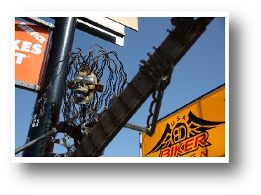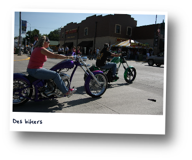 Sturgis. Cela fait bientôt une heure que nous roulons sur l'autoroute et cela fait bientôt une heure que nous voyons passer des motards chevauchant des harley-davidson en direction de Sturgis. Sturgis 2009, réunion d'énormes bécanes sur lesquelles hommes ou femmes présentent leurs chevaux (à peu près tous pareils) mugissant de toutes leurs forces pour montrer leur autorité aux autres. J'ai trouvé ça très folklorique. (voir la vidéo)