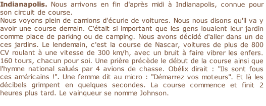 Après le Mont Rushmore, nous roulons et passons devant la statue de Crazy Horse, chef populaire indien, qui sera trois fois plus grande que le Mont Rushmore. Nous repartons et nous arrêtons dix miles plus loin pour dormir dans un camping extraordinaire, dans lequel il y a une piscine, pas de mouches noires ni moustiques, un parc à jeux, un feu, et des gens qui nous invitent à manger des "Smores", nourriture sacrée. Ce sont des chamallows , dont vous connaissez tous sûrement à quoi ça ressemble, mais vous ne connaissez pas les Smores américains. Recette :