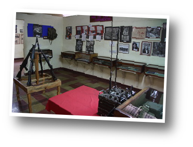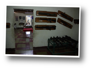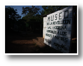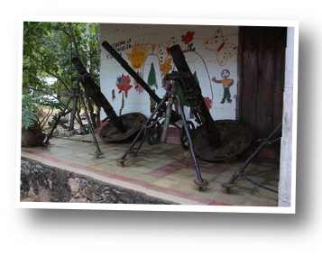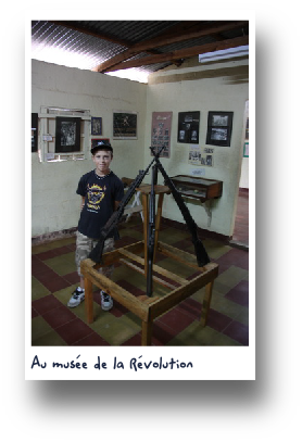En arrivant à Perquin, je suis tout excité car nous allons visiter le musée de la Révolution. Mais en entrant, ma joie disparait; la première salle a les murs recouverts de photos de tous les gens qui se sont fait assassinés pendant la révolution. Le peuple s'est révolté contre le gouvernement à cause de la pauvreté. La dernière salle est remplie de fusils, de bazookas, de mortier, de mitrailleuses qui ont servie pendant cette révolution. Le monsieur qui présentait le musée est d'ailleurs un ancien révolutionnaire, un guerillero, fier.