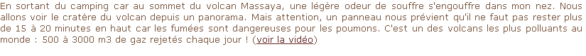 Arrivant au Parc national du volcan Massaya, nous allons visiter le musée dédié aux volcans. C'est un musée interactif et très intéressant. Dommage que les animaux empaillés soient mal faits...