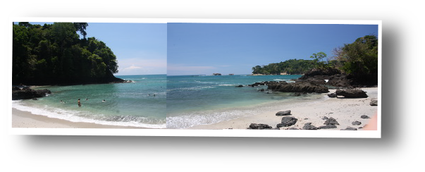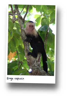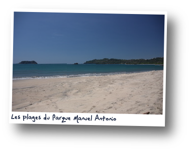 Nous visitons le magnifique parc Manuel Antonio. C'est vrai qu'il est victime de son succès et puis nous sommes le week-end. Mais la nature est belle, les vues plongeantes vers l'océan brillantes et nous observerons pour la première fois des singes capucins à tête blanches. Des papillons morphos bleus et des paresseux se font aussi timidement observer. Les iguanes sont beaucoup moins farouches et viennent, téméraires, à quelques centimètres dès que nous sortons le pique-nique. Nous rencontrons une famille française installée à Montréal depuis de nombreuses années à 3 rue du lieu où nous habitions nous-mêmes. Clin d'oeil de la vie. Sur la fin du parcours s'égrènent des plages cartes postales aux eaux turquoises.