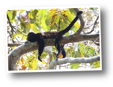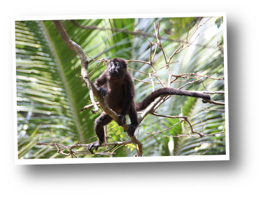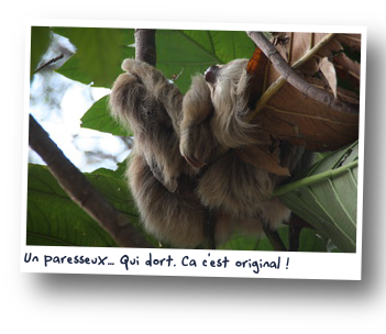 Des petites maisons individuelles, un restaurant sous un toit de chaume, et un ou deux espaces pour les camping car. Le tout au bord d'une rivière à crocodiles, avec des arbres immenses abritant des familles de singes hurleurs, des paresseux et toutes sortes d'oiseaux. C'est parfait. Mais même si le lieu est superbe, il fait malheureusement si chaud que la nuit ne sera pas vraiment réparatrice. Nous profitons abondamment des douches froides, quel bonheur lorsqu'il fait 40 degrés et 80% d'humidité... De plus, c'est certainement les douches les plus propres depuis le début de notre périple. On est suisse ou on l'est pas ! Au matin nous partons faire une petite marche le long de la rivière