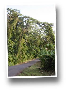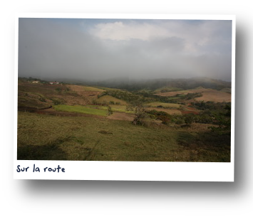 Au matin, nous ne parvenons pas à quitter les voyageurs français. Sur le chemin qui passe derrière nous passent André et Danielle qui partent sur le volcan dans un sens puis Anja et Holger, dans l'autre sens - qui ne nous voient pas - et enfin Maryline et Vincent qui s'arrêtent discuter quelques minutes. Bref en ce matin pluvieux au Costa Rica à des milliers de km de chez nous, nous avons tout d'un coup le sentiment de connaître tout le monde. Puis c'est la route.