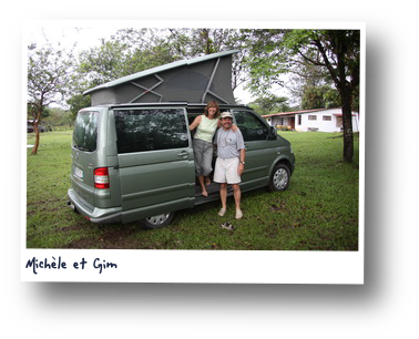 Nous faisons (enfin) la très sympathique connaissance de Michelle et Jean-Manuel (dit Gim) (leur site) qui voyagent en VW transporteur et avec qui nous sommes en contact email depuis plusieurs mois.
