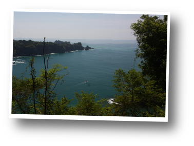pentes deviennent de plus en plus impressionnantes. A présent nous savons que nous ne pourrons pas revenir en arrière. Nous prendrons donc le ferry qui traverse le golfe de Nicoya depuis Paquera. C'est néanmoins un sentiment fort bizarre que d'avancer en sachant qu'il n'y aura pas moyen de revenir sur ses pas. Le payage est superbe. Une jungle de plus en plus verte et dense. Au détour des virages, les montagnes se jettent littéralement dans la mer. Au fond des vallées, des plaines vert tendre accueillent des zébus qui broutent paisiblement escortés d'échassiers blancs. Des manguiers sont lourds de fruits et des singes s'accrochent sur les branches des grands arbres.